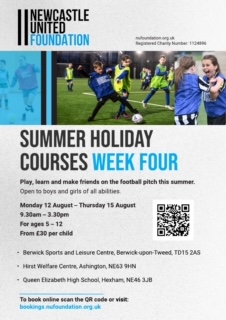 Please find attached flyers for Newcastle United summer camps as well as information on whats going on at Kelso Skating rink this summer. SUMMER 2024 WEEK 2 SUMMER 2024 WEEK 4 Advert July Aug
